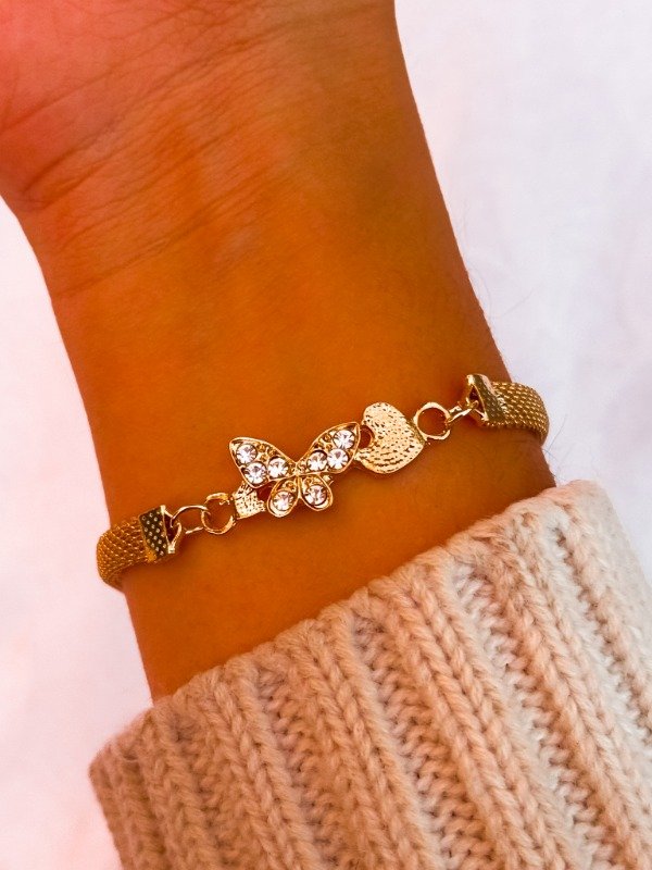 Pulsera mariposa corazon dorado